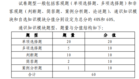 统考试卷结构