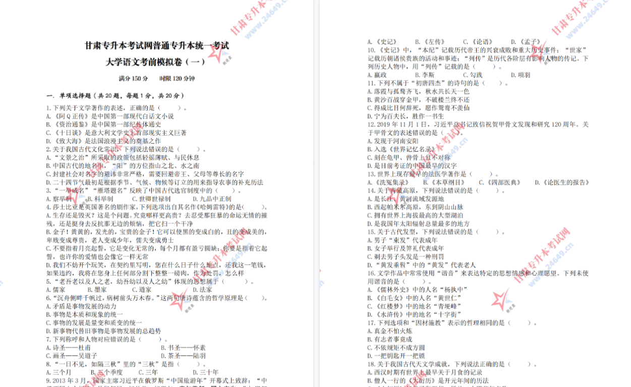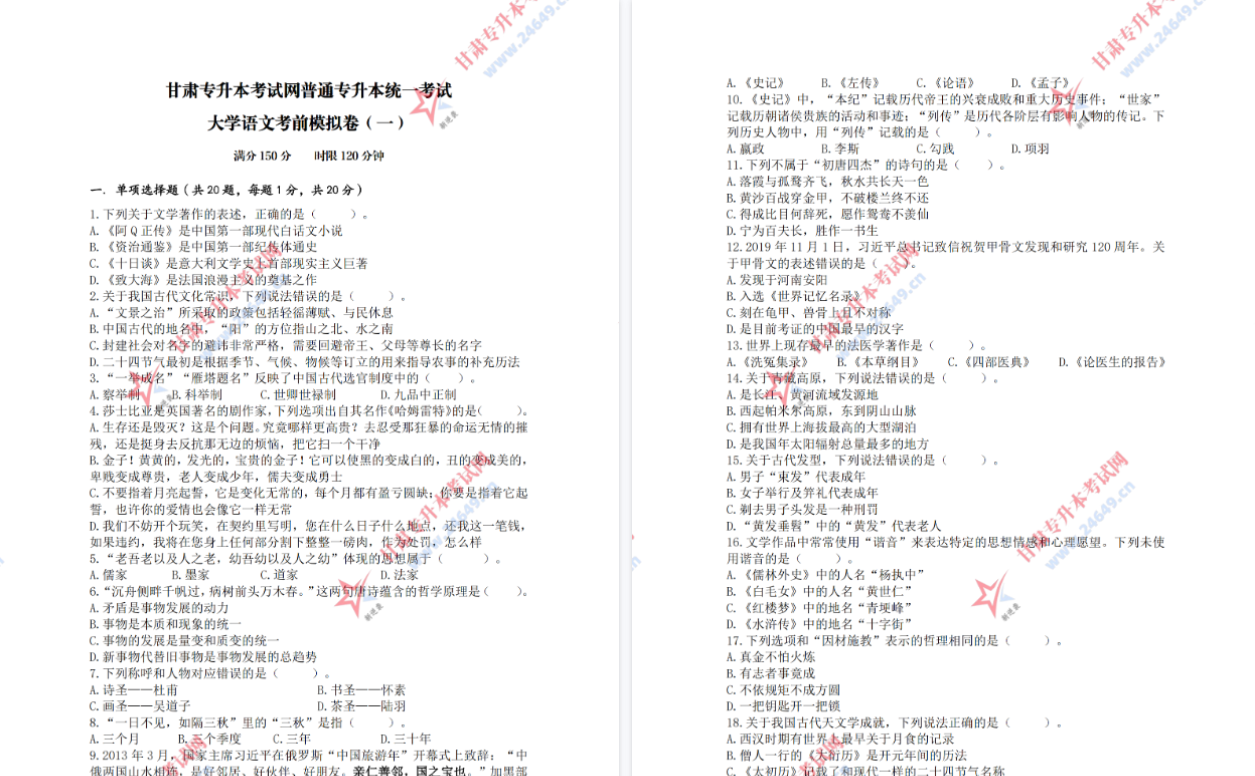 2026年大学语文(冲刺卷)二