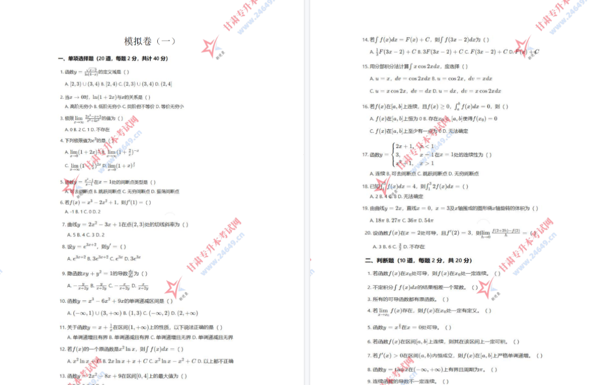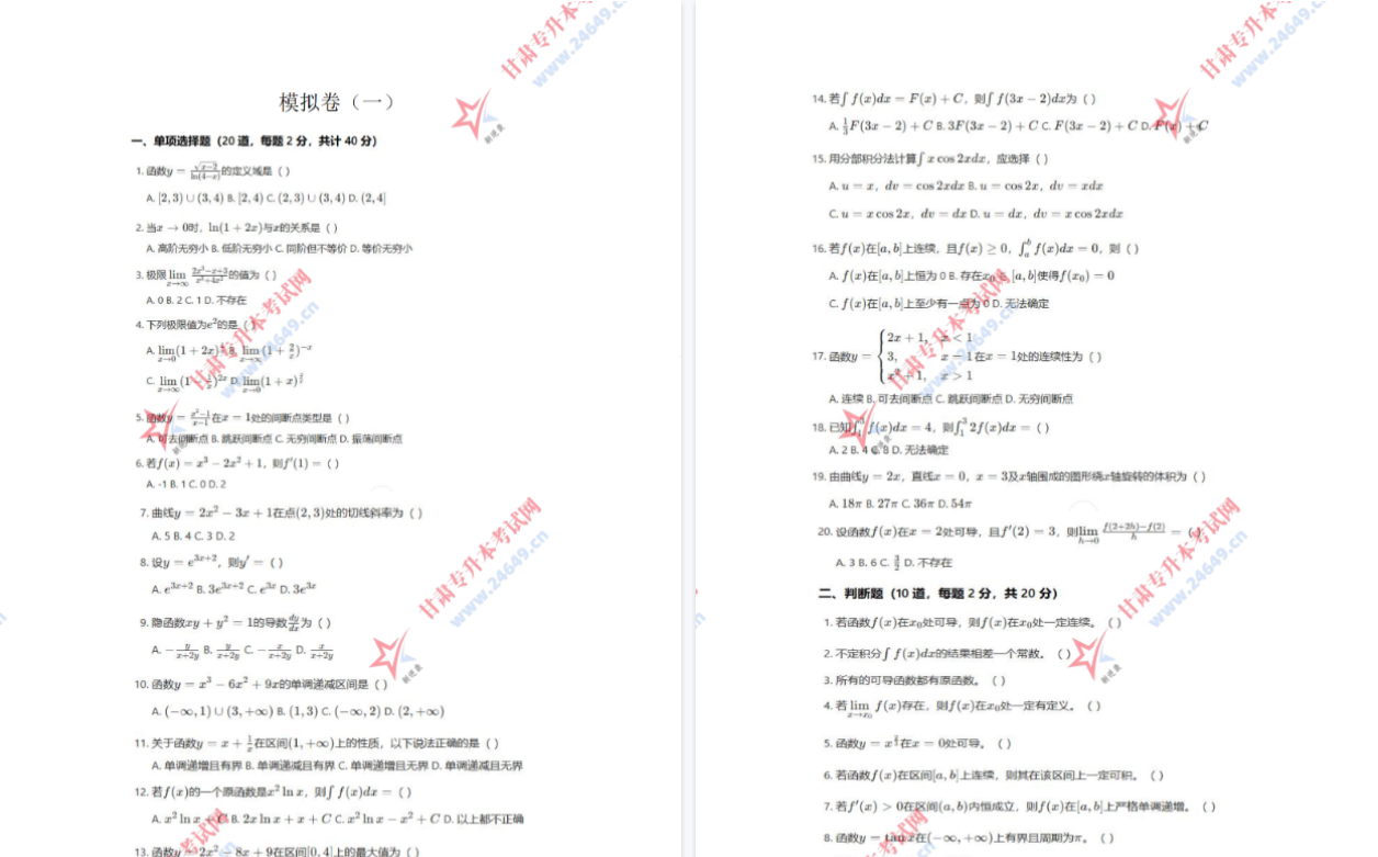 2026年高等数学(冲刺卷)一