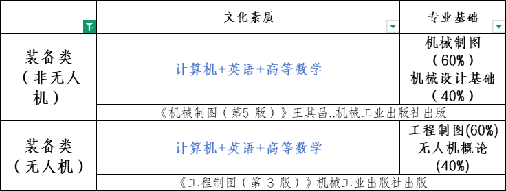 2026年专业测试科目与2025年相同,分为21个大类科目,同学你提问的装备类在科目中规定如图:
